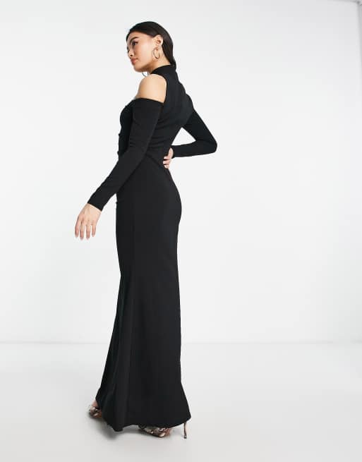 Goddiva Cut Out Shoulder Fishtail Maxi Dress Black Very well made.