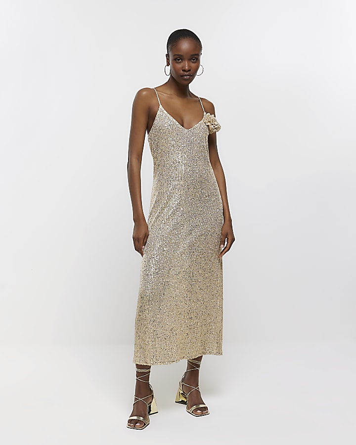 Dresses Gold Sequin Midi Dress Dorothy Perkins Very well made.