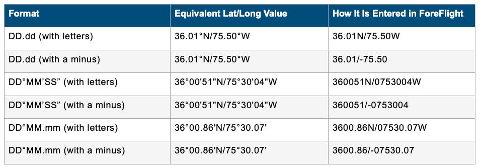 How do I enter a latitude and longitude waypoint ForeFlight Support Very well made.
