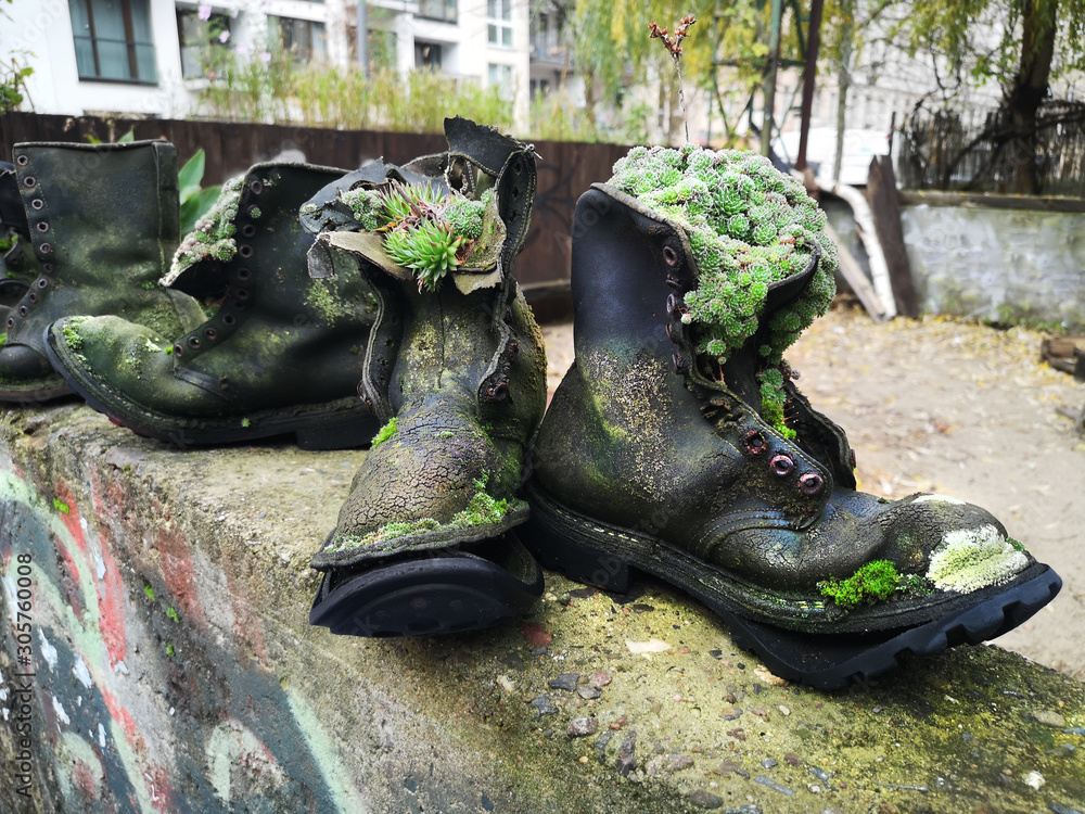 Heavy Leather Boots And Protective Gloves By The Garden Bed Plants Grow And Bloom The Gardener Went Without Barefoot To Snack Garden Maintenance Training Work Habits Stock Photo Download Image Now Very well made.