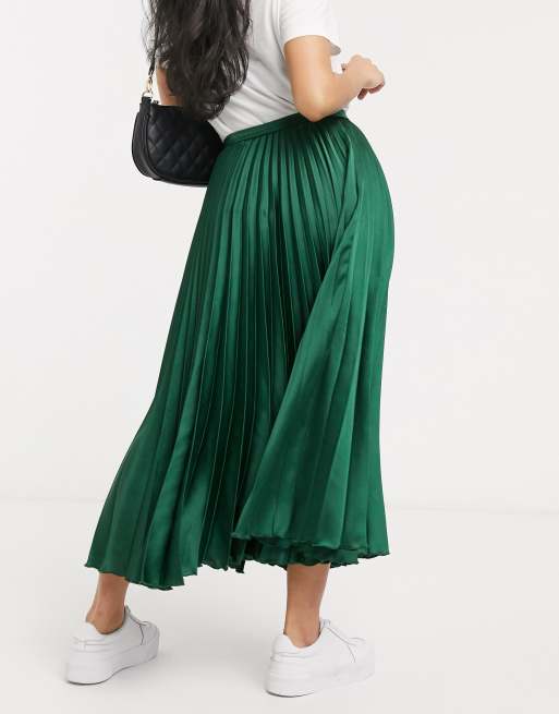 ASOS DESIGN Petite satin pleated midi skirt in forest green Very well made.