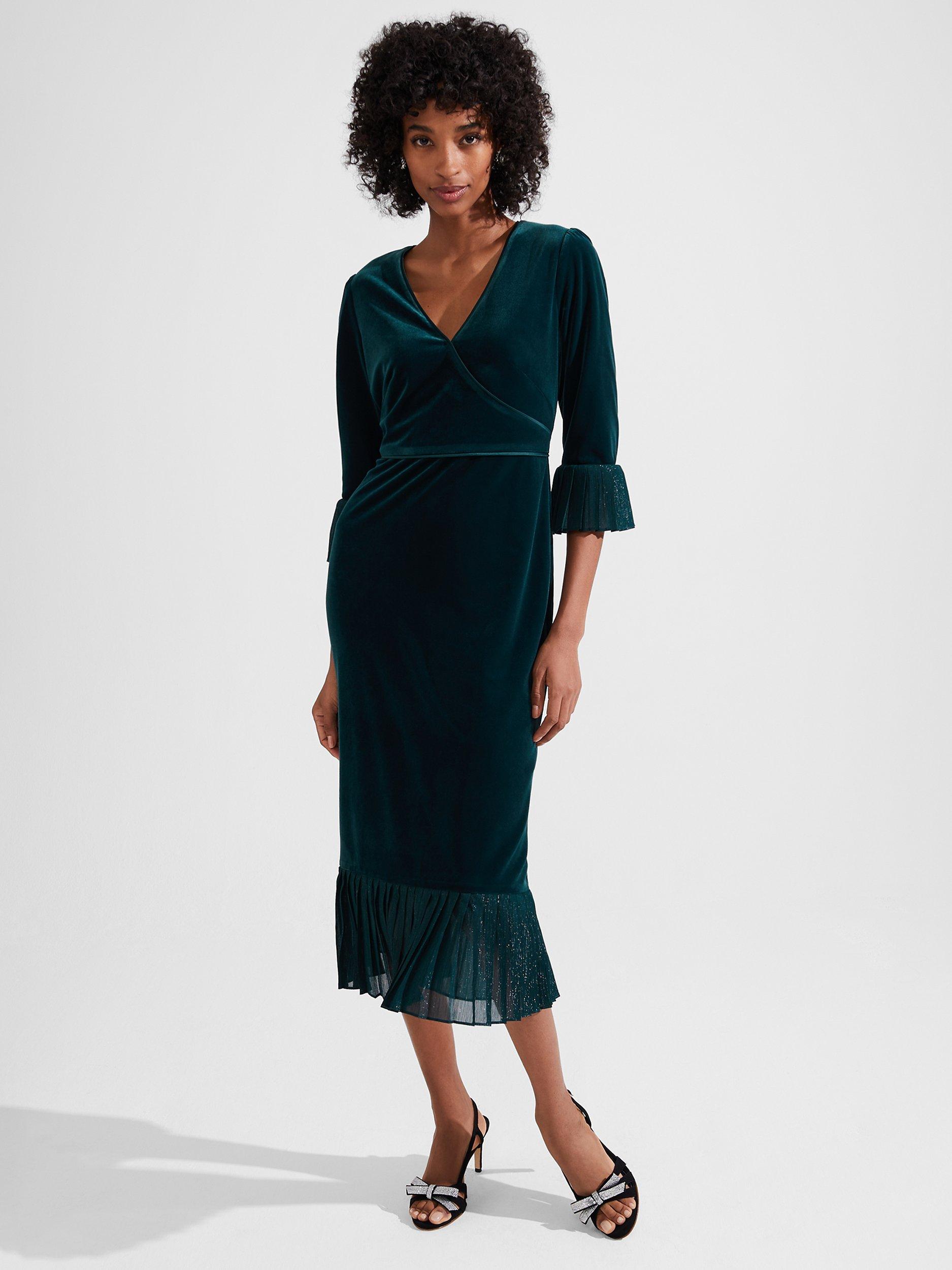 Hobbs Melodie Midi Velvet Dress Green Very well made.