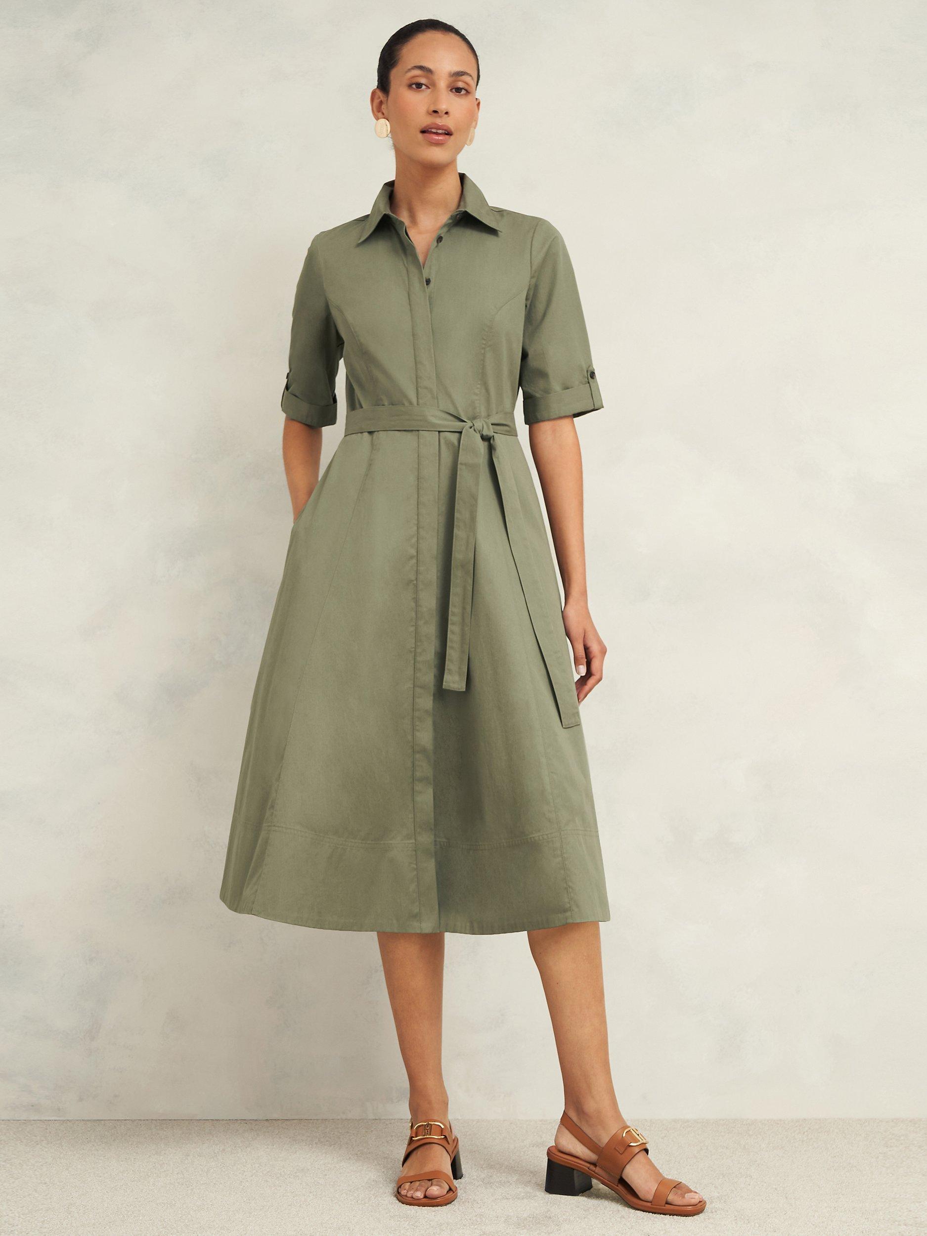Hobbs Riley Organic Cotton Blend Shirt Dress Sage Very well made.