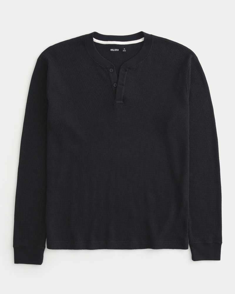 Men s Long Sleeve Waffle Henley in Black Size L from Hollister Very well made.