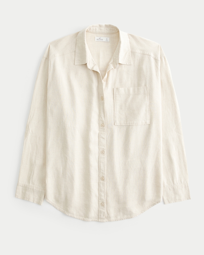 Women s Oversized Linen Blend Shirt in Light Brown Size XXS from Hollister Very well made.