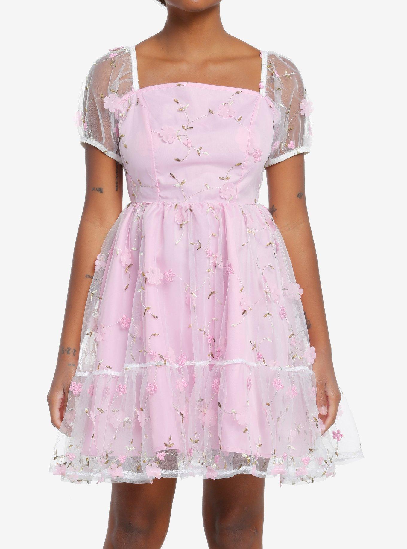 Sweet Society Pink Floral Organza Dress Hot Topic Very well made.