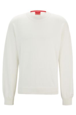 HUGO Relaxed fit pure cotton sweater with 3D knitted pattern White Very well made.