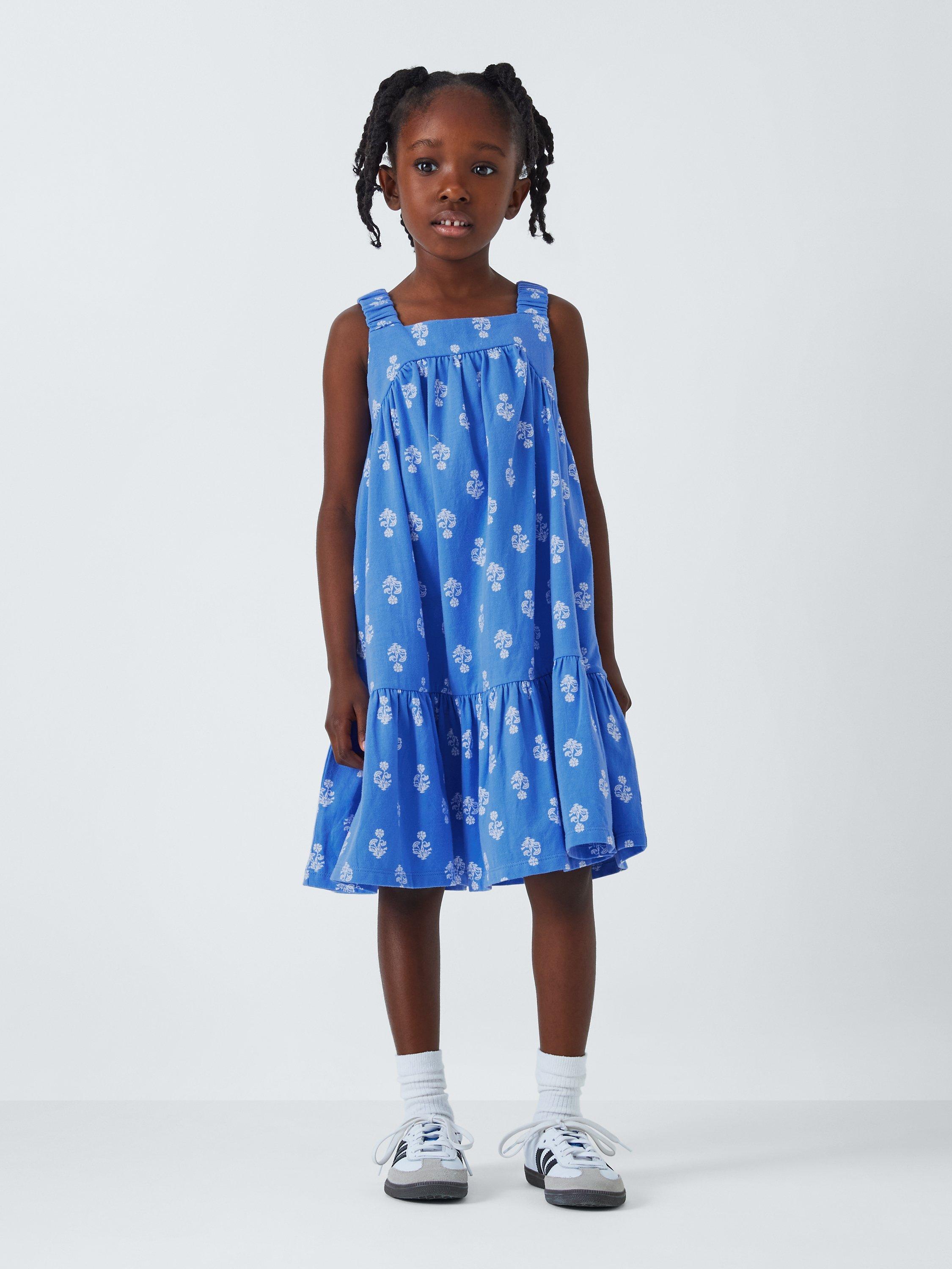 John Lewis Kids Flower Jersey Swing Dress Blue Very well made.