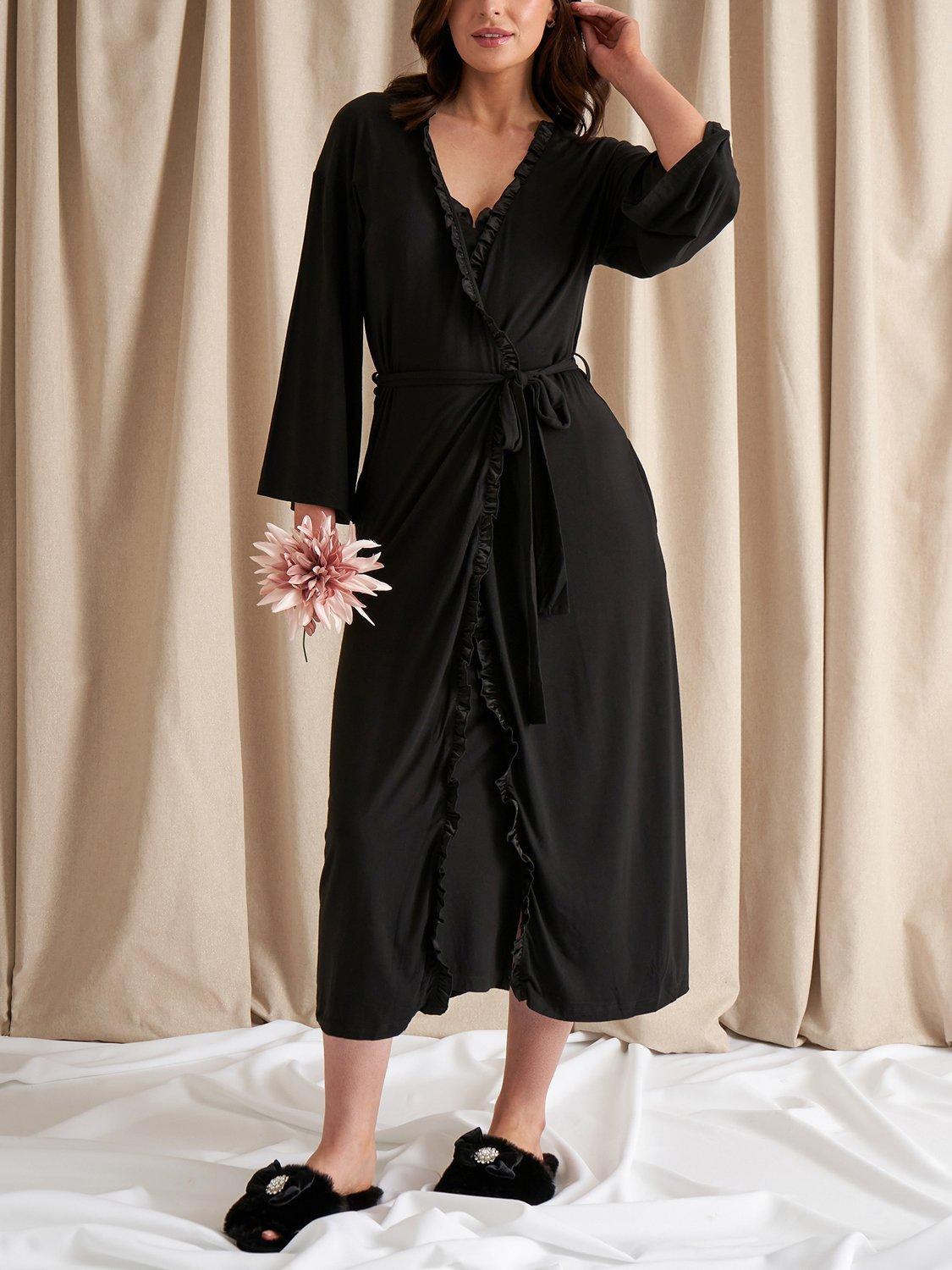 Pretty You London Bamboo Frill Kimono Dressing Gown Black Very well made.