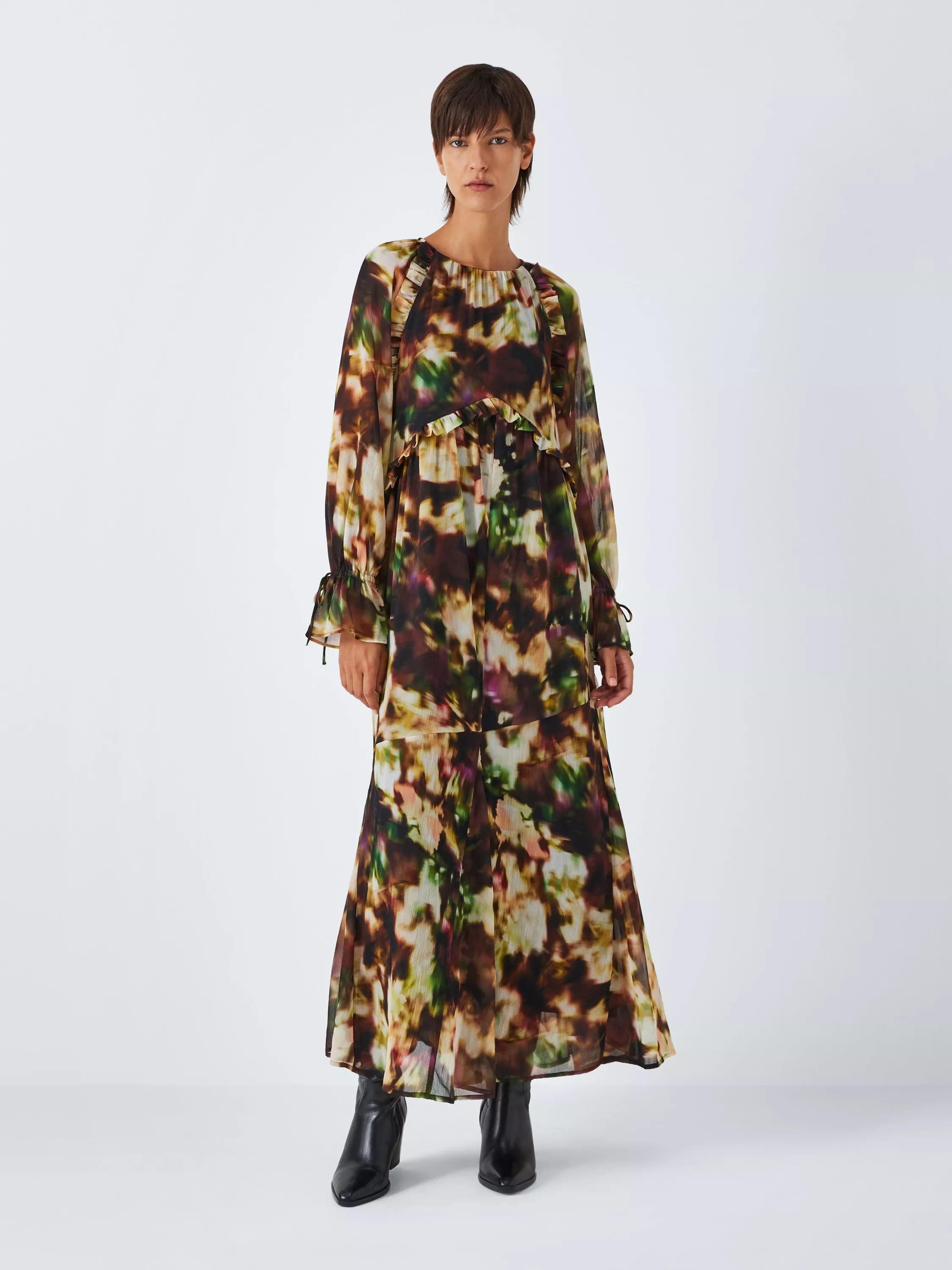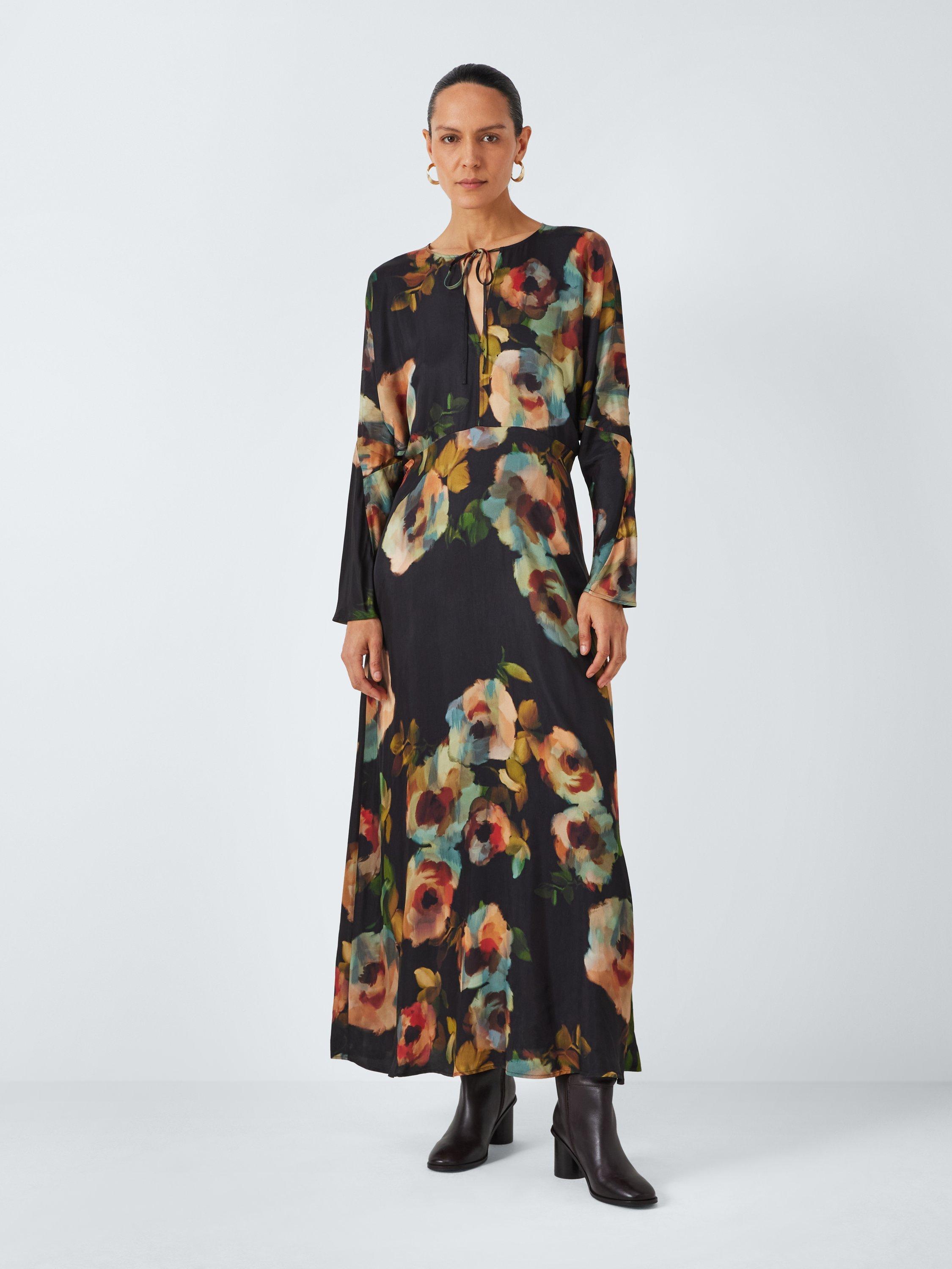 John Lewis Rose Print Batwing Maxi Dress Black Multi Very well made.