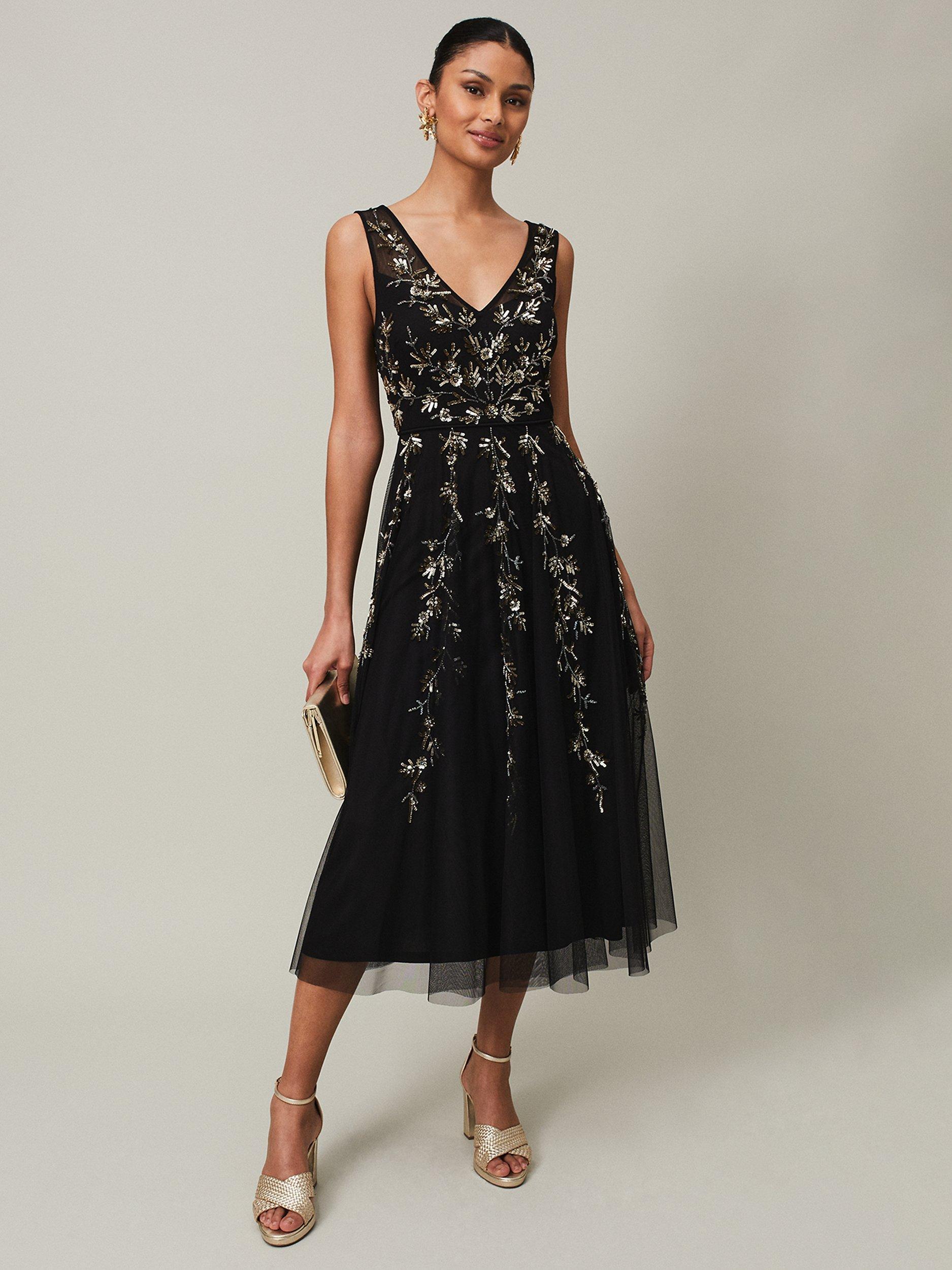 Phase Eight Marissa Embellished Midi Dress Black Gold Very well made.