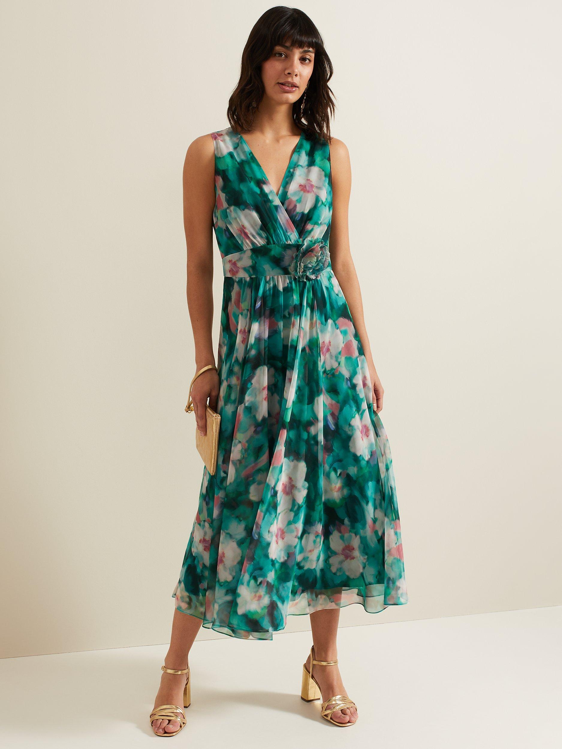 Phase Eight Nora Chiffon Floral Midi Dress Multi Very well made.