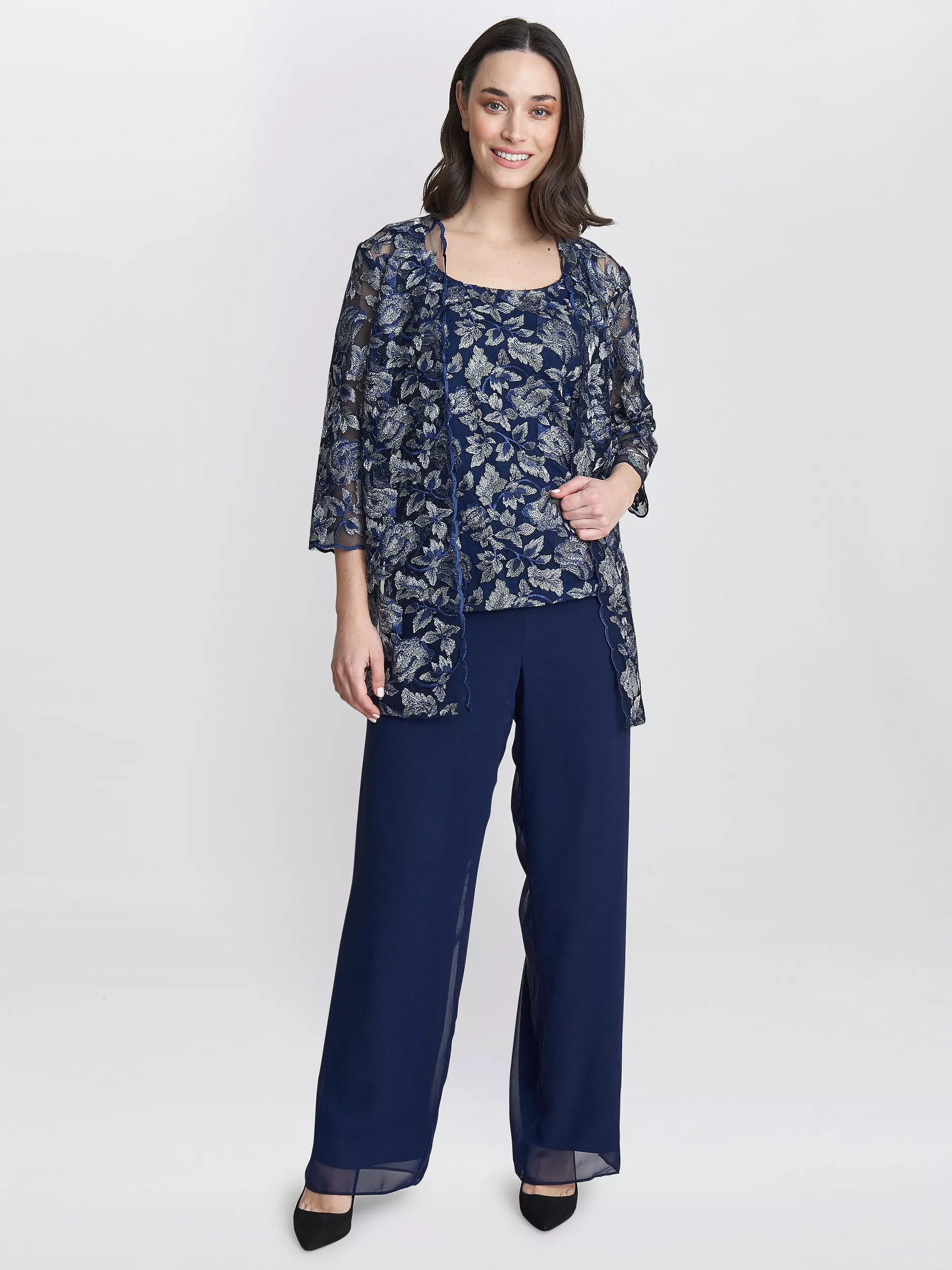Gina Bacconi Nikki Three Piece Trouser Suit Navy Silver Very well made.