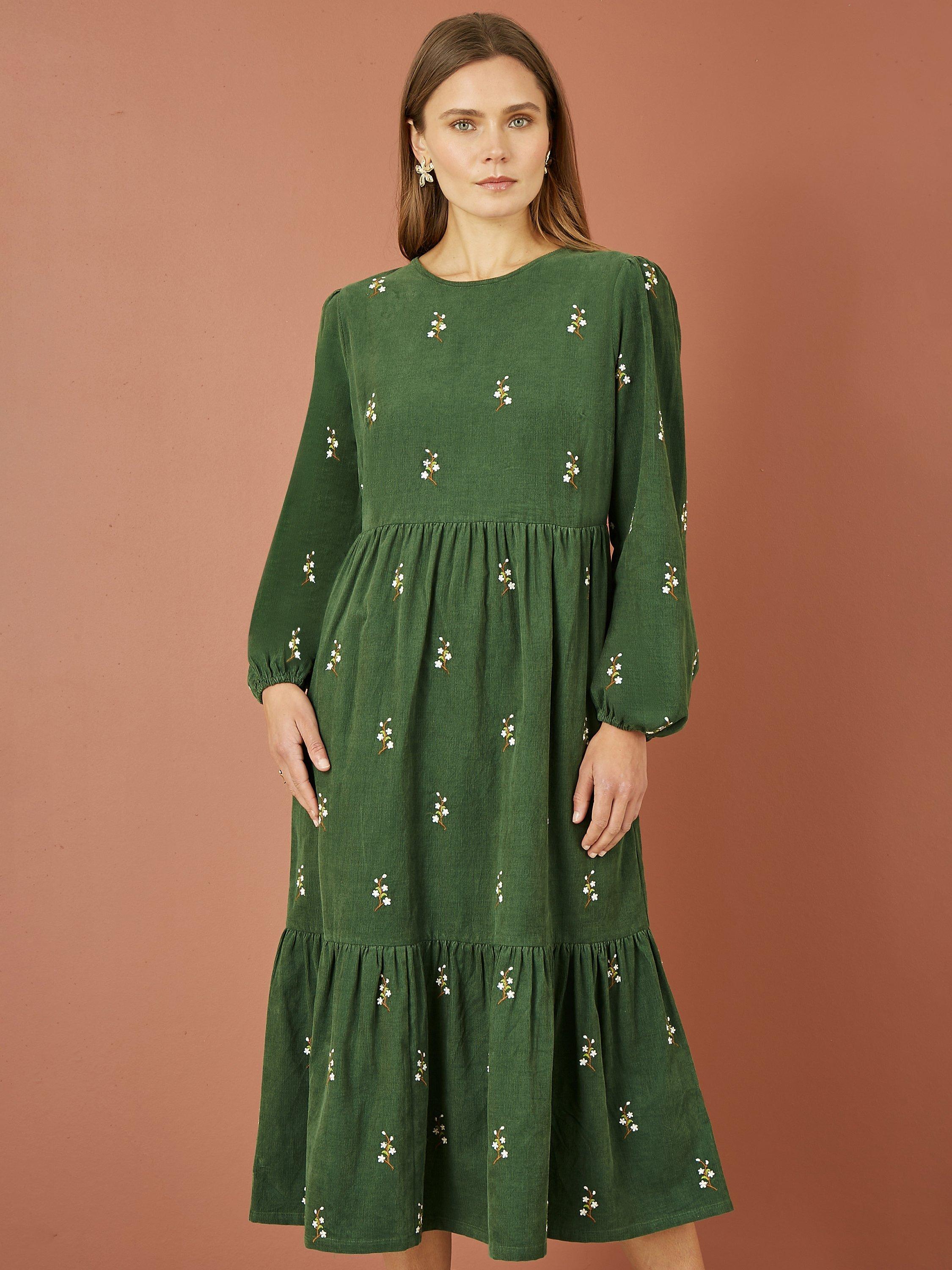 Yumi Floral Embroidered Midi Dress Green Very well made.