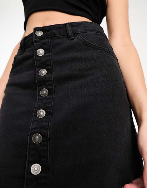 Petite Mini jupe en jean noire boutonnee sur le devant New Look Very well made.