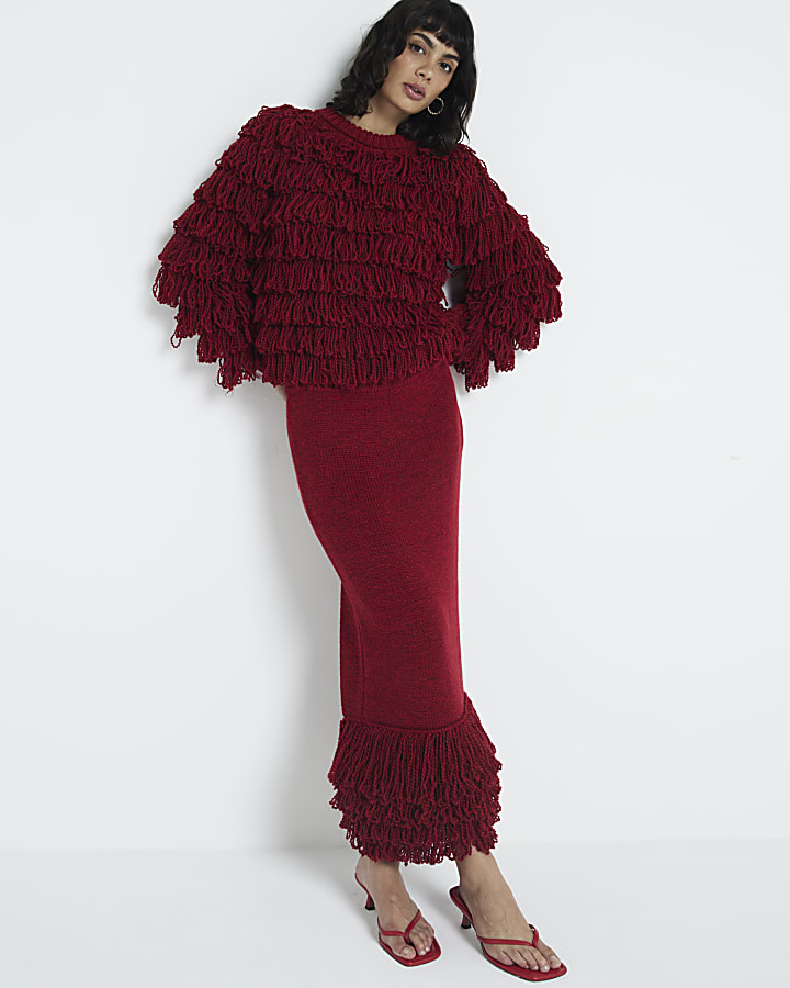 Knitted Fringe Midi Skirt Grey NA KD Very well made.