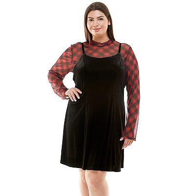 Juniors Plus Size Lily Rose Velvet Fit Flare Dress Mesh Top Set Very well made.