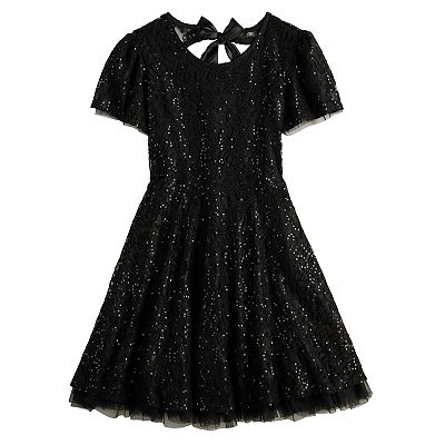 Girls 7 20 Knit Works Lace Flutter Sleeves Bow Back Skater Dress in Regular Plus Size Very well made.