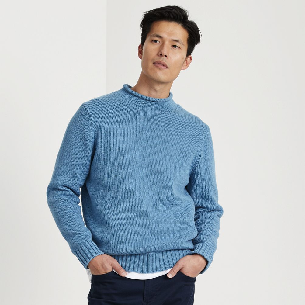 Men s Cotton Drifter Rollneck Sweater Lands End Very well made.