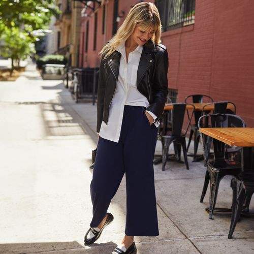 Lands End Women s Petite Sport Knit Elastic Waist Wide Leg Crop Pants X Small Radiant Navy at Amazon Women s Clothing store Very well made.