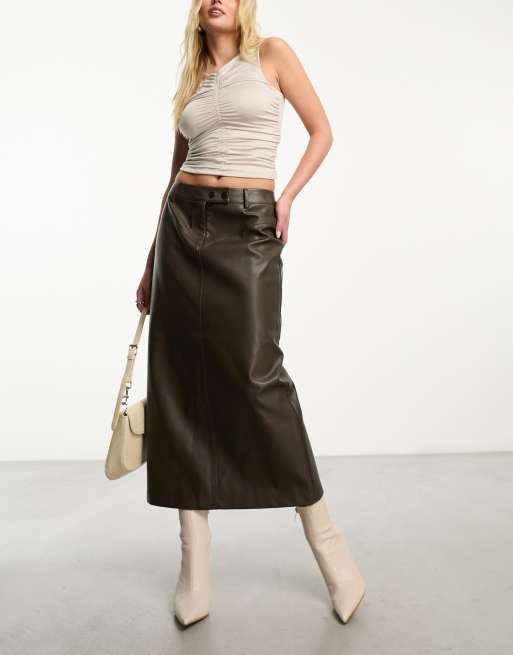 Bardot faux leather midi skirt in dark chocolate ASOS Very well made.