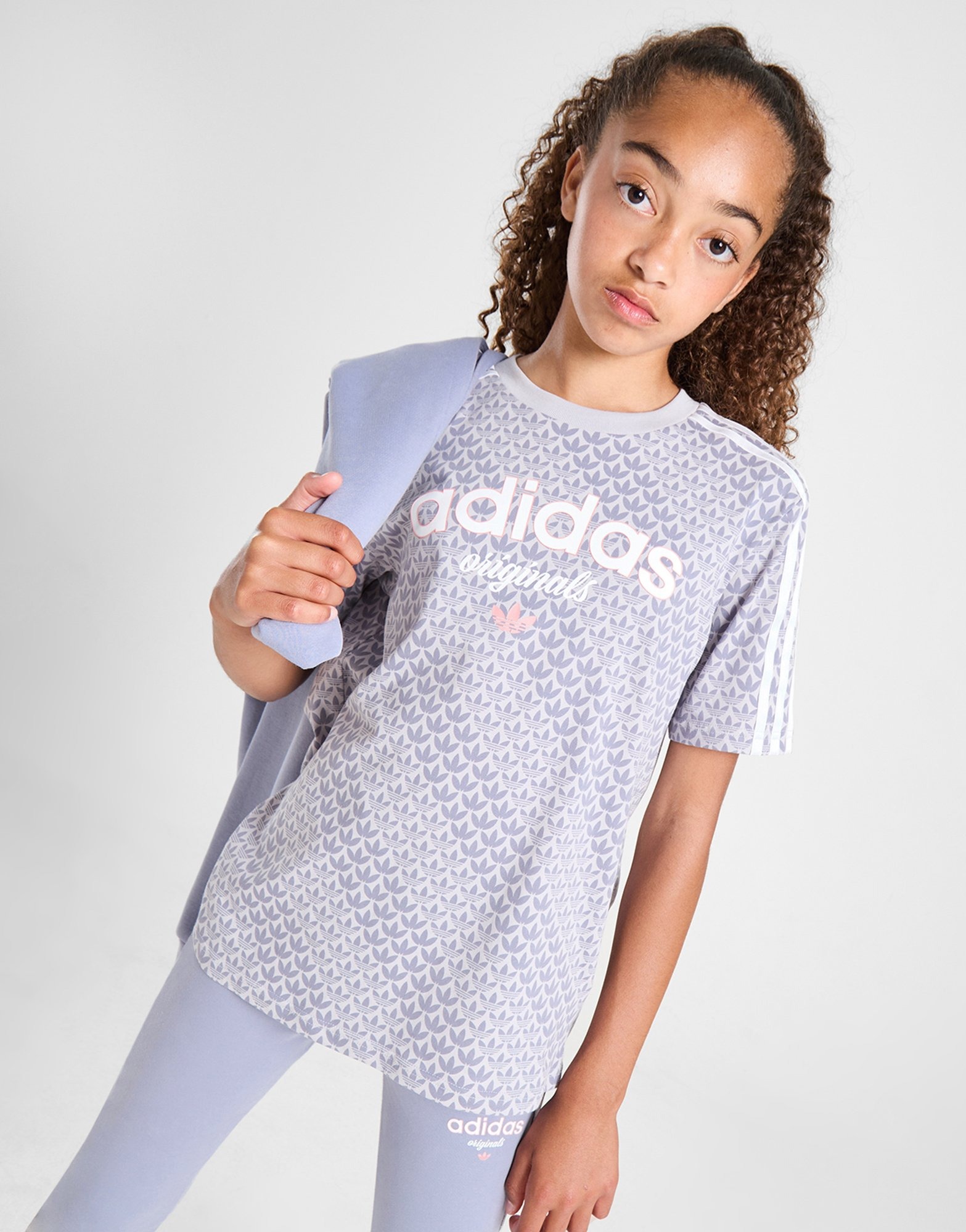 adidas Originals Girls Varsity All Over Print T Shirt Junior in Grigio JD Sports Very well made.