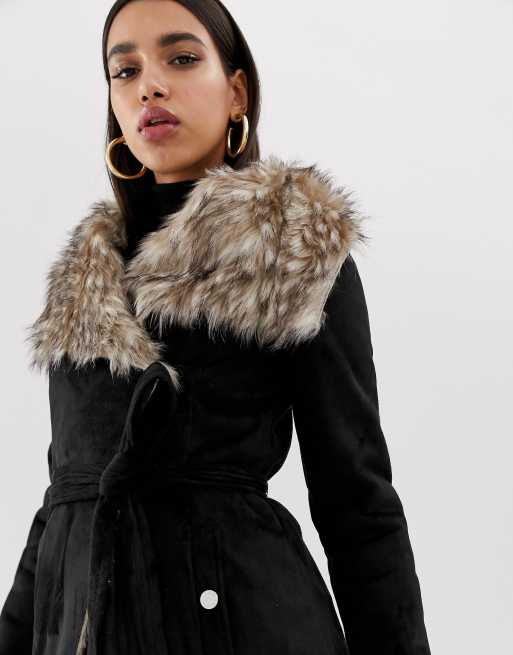 Buy Lipsy Black Curve Faux Fur Collar Belted Longline Wrap Coat from Next Luxembourg Very well made.