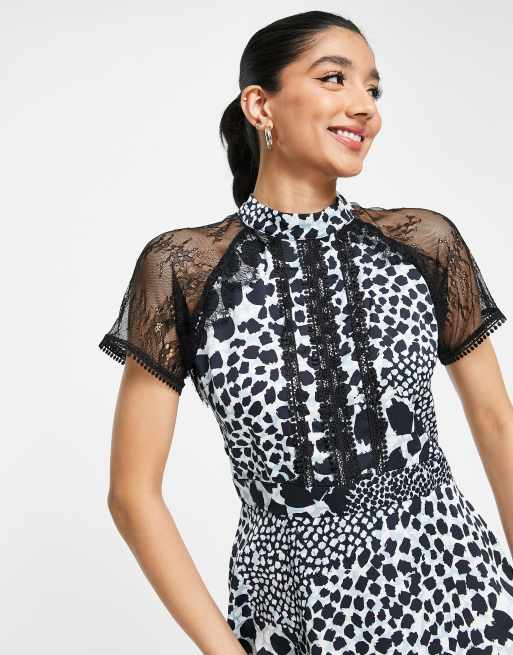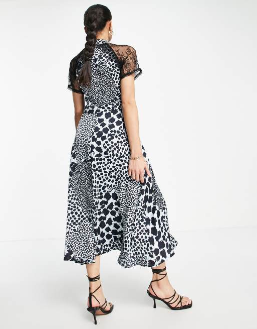 Liquorish a line lace detail midi dress in pink animal print Very well made.