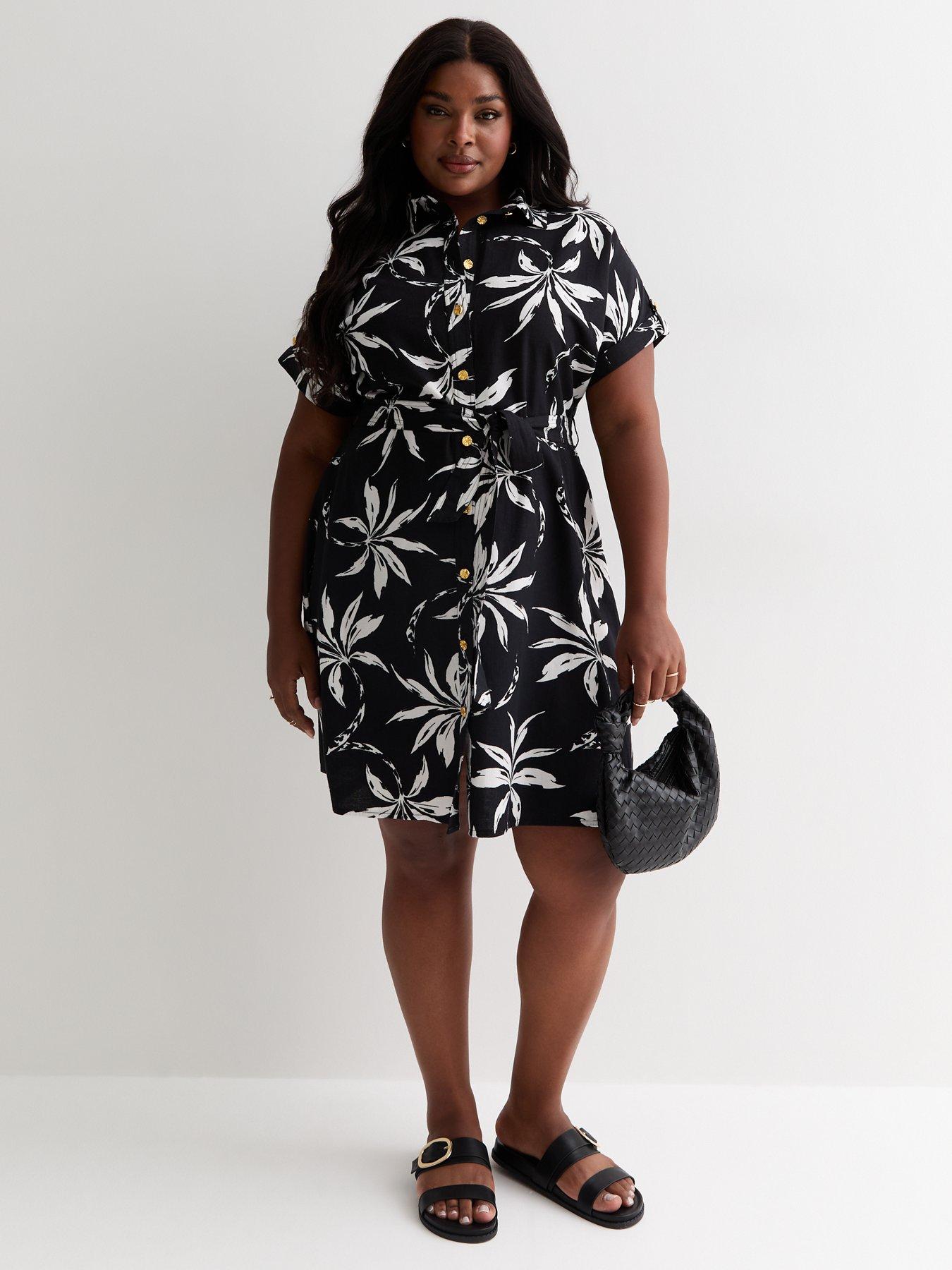New Look Curves Black Palm Print Belted Mini Shirt Dress Very Ireland Very well made.
