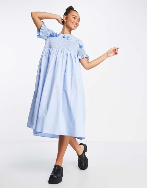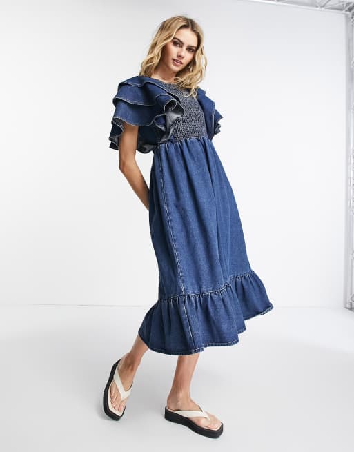 Lost Ink shirred detail midaxi denim dress in mid wash blue ASOS Very well made.