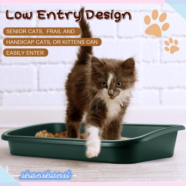 Shanshan Low Entry Senior Cat Litter Box Large Size Low Entry Open Top Pet Litter Box Cat Toilet For Senior Kitten Very well made.
