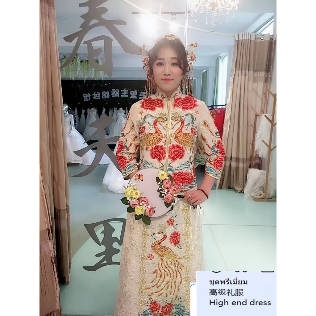 Low Price Sample Clothing Premium NdFemale Wedding Dress Classic Floral Phoenix Pattern Empty Color Trimmed Hotel Dress Women Suit Shopee Singapore Very well made.