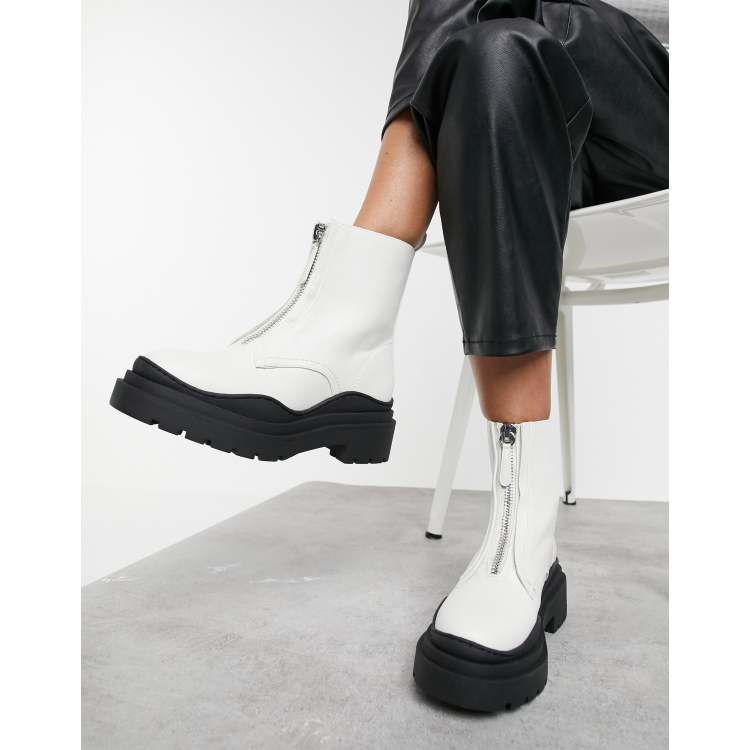 Mango Leather Knee High Heeled Boots in White Lyst Very well made.