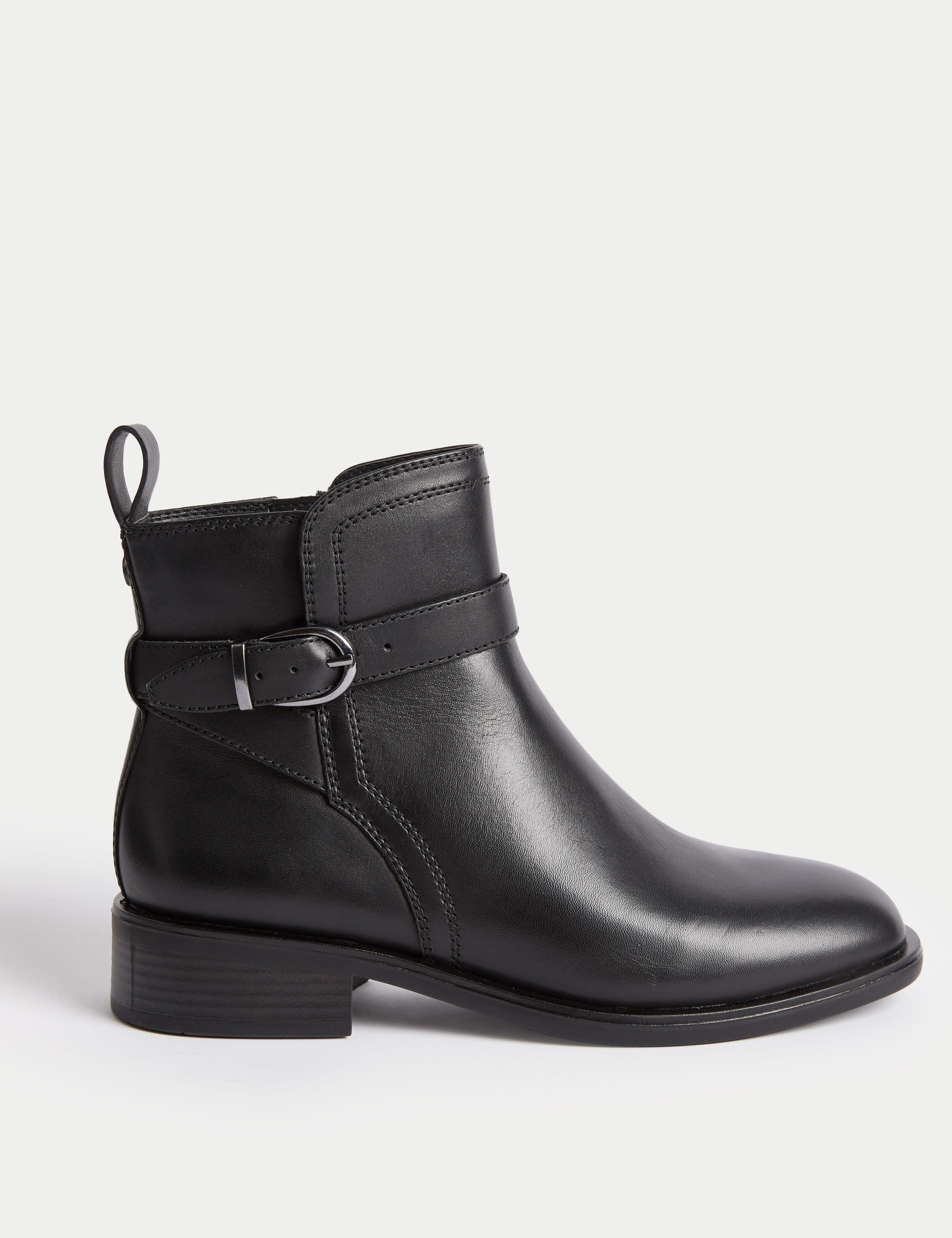 Leather Buckle Block Heel Ankle Boots Very well made.
