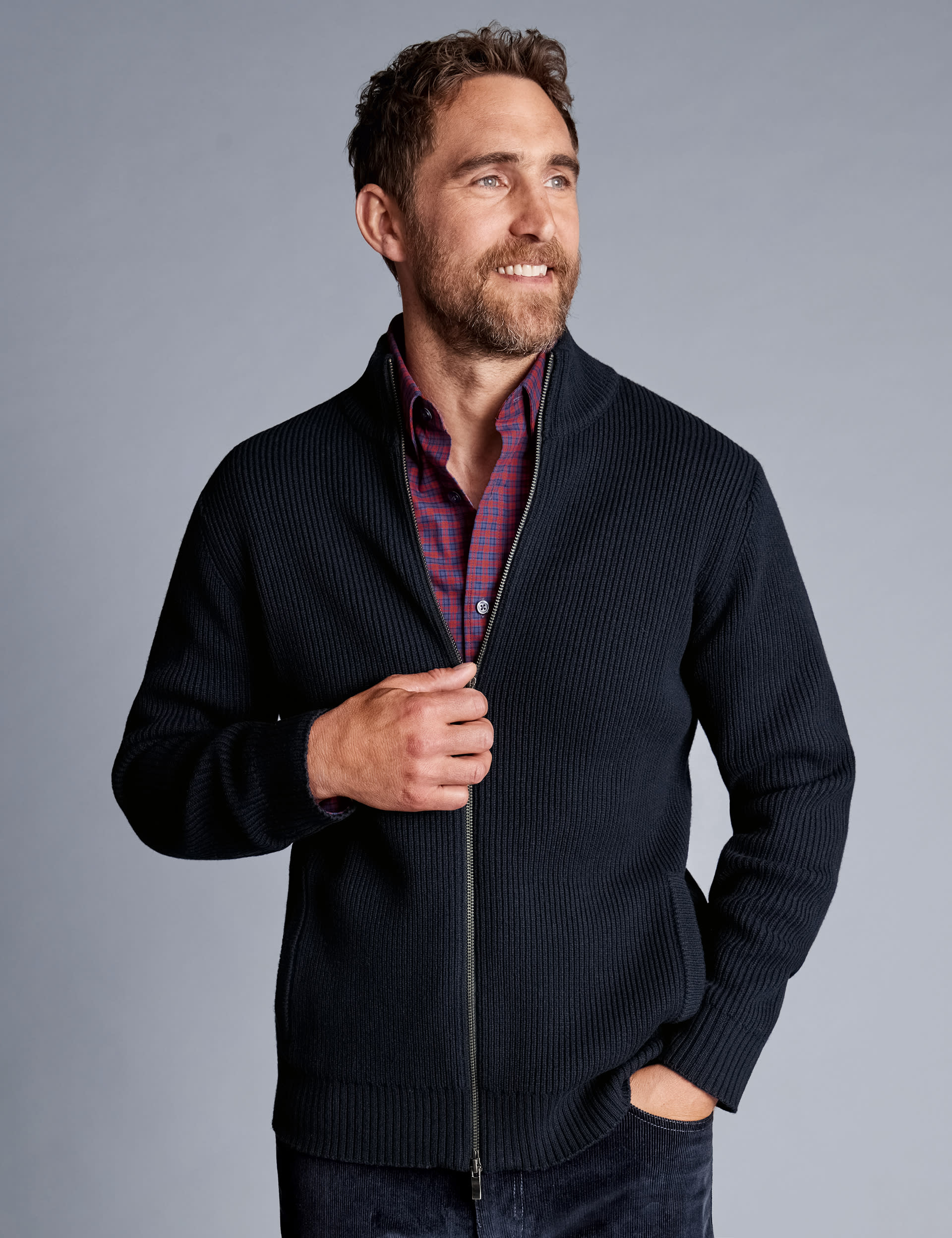 Pure Wool Ribbed Zip Up Cardigan Charles Tyrwhitt M S Very well made.