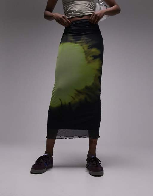 Topshop Tall mesh blurred space printed picot trim midi skirt in multi ASOS Very well made.