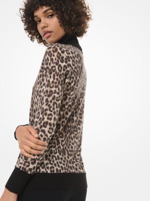 Leopard Print Wool Blend Turtleneck Sweater Michael Kors Canada Very well made.
