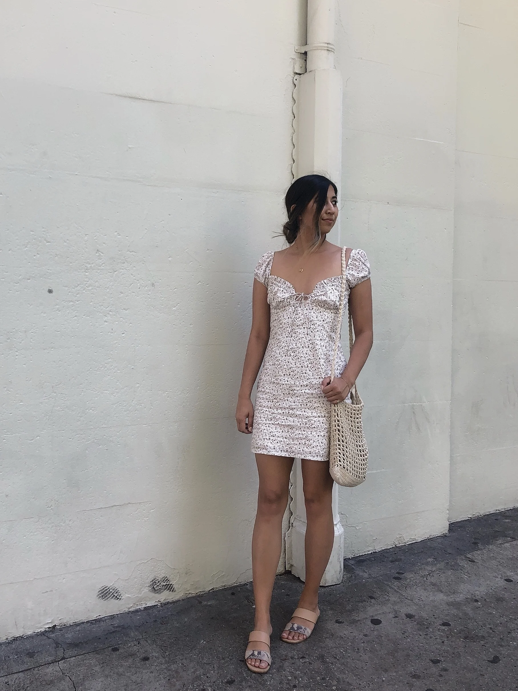 Everlane Shirred Mini Dress A Mini Review Sizing Fit How to Style whatveewore Very well made.