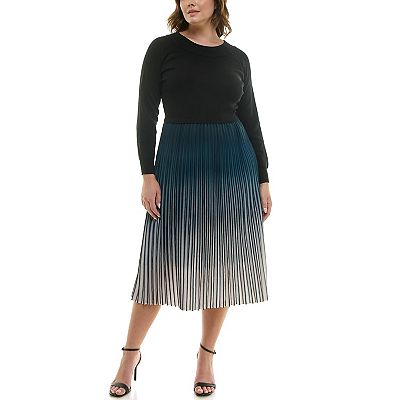 Women s Nanette Lepore Mixed Media Chiffon Sweater Dress Size Small Blue Ombre Very well made.