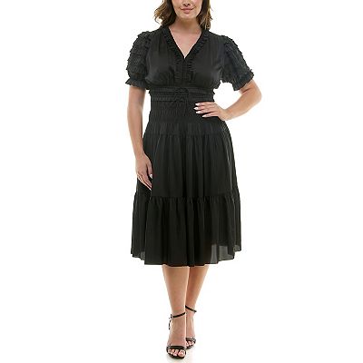 Nanette Nanette Lepore Women s Carribean Texture Dress with Self Tie Belt and Tiered Flutter Sleeve at Amazon Women s Clothing store Very well made.