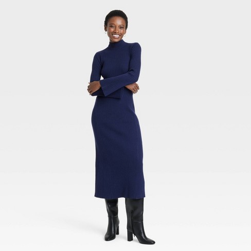Amazon ZARKL Sweater Dress for Women Ribbed Knit Lantern Sleeve Sweater Dress Color Navy Blue Size X Large Clothing Shoes Jewelry Very well made.