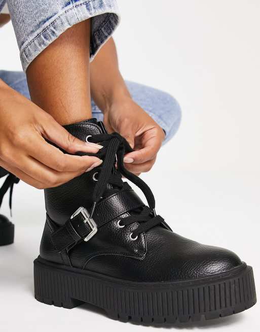 New Look chunky flatform lace up flat boot in black ASOS Very well made.