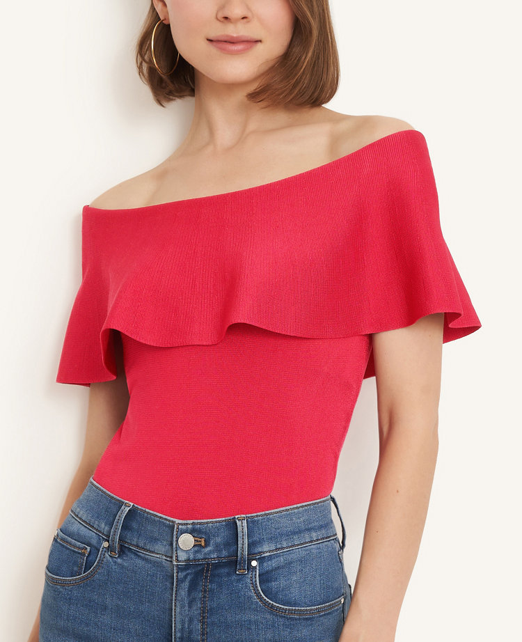 Off Shoulder Ruffle Sweater Red Haute Very well made.