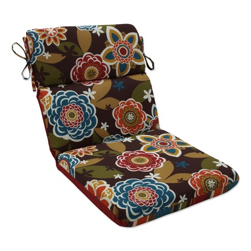 Outdoor Reversible Rounded Chair Cushion Brown Turquoise Floral Stripe Pillow Perfect Very well made.