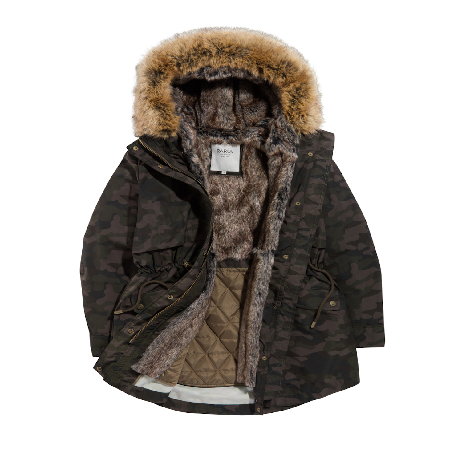 Women s Caversham Faux Fur Parka Camo Small Parka London Very well made.