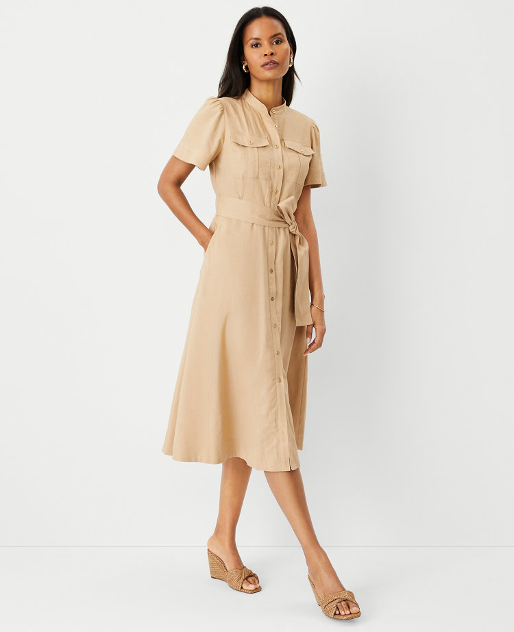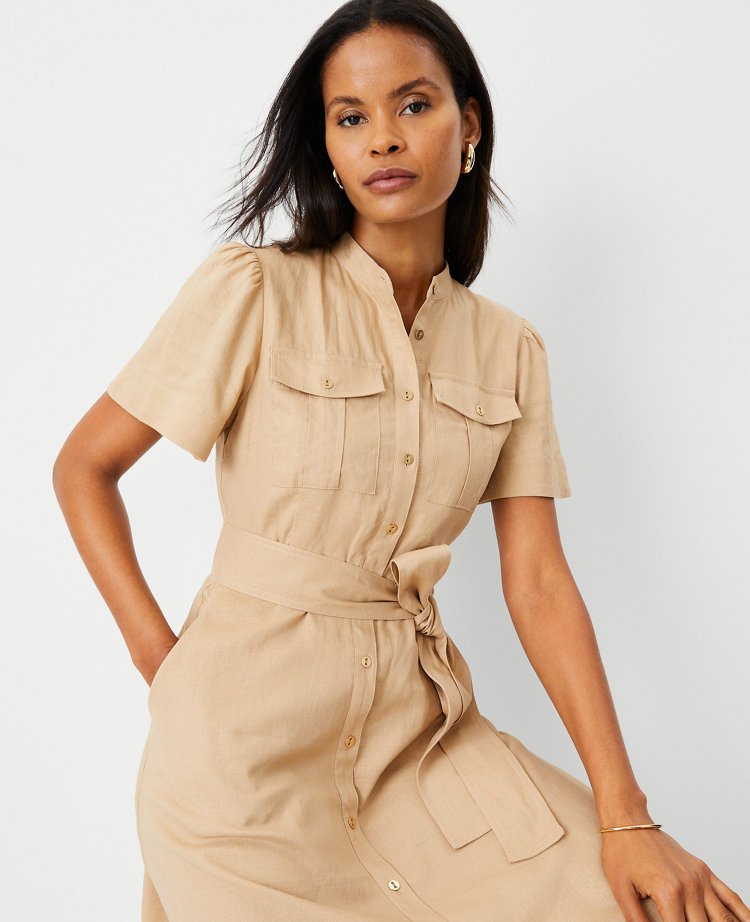 Petite Linen Blend Pocket Midi Shirtdress Very well made.