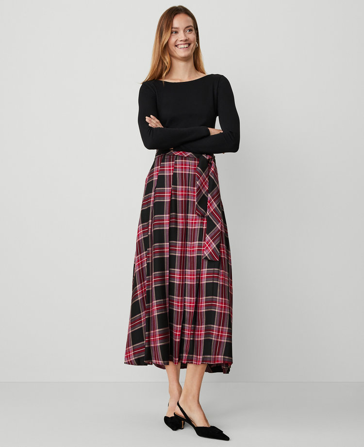 Petite Plaid Tie Waist Pleated Midi Skirt Very well made.