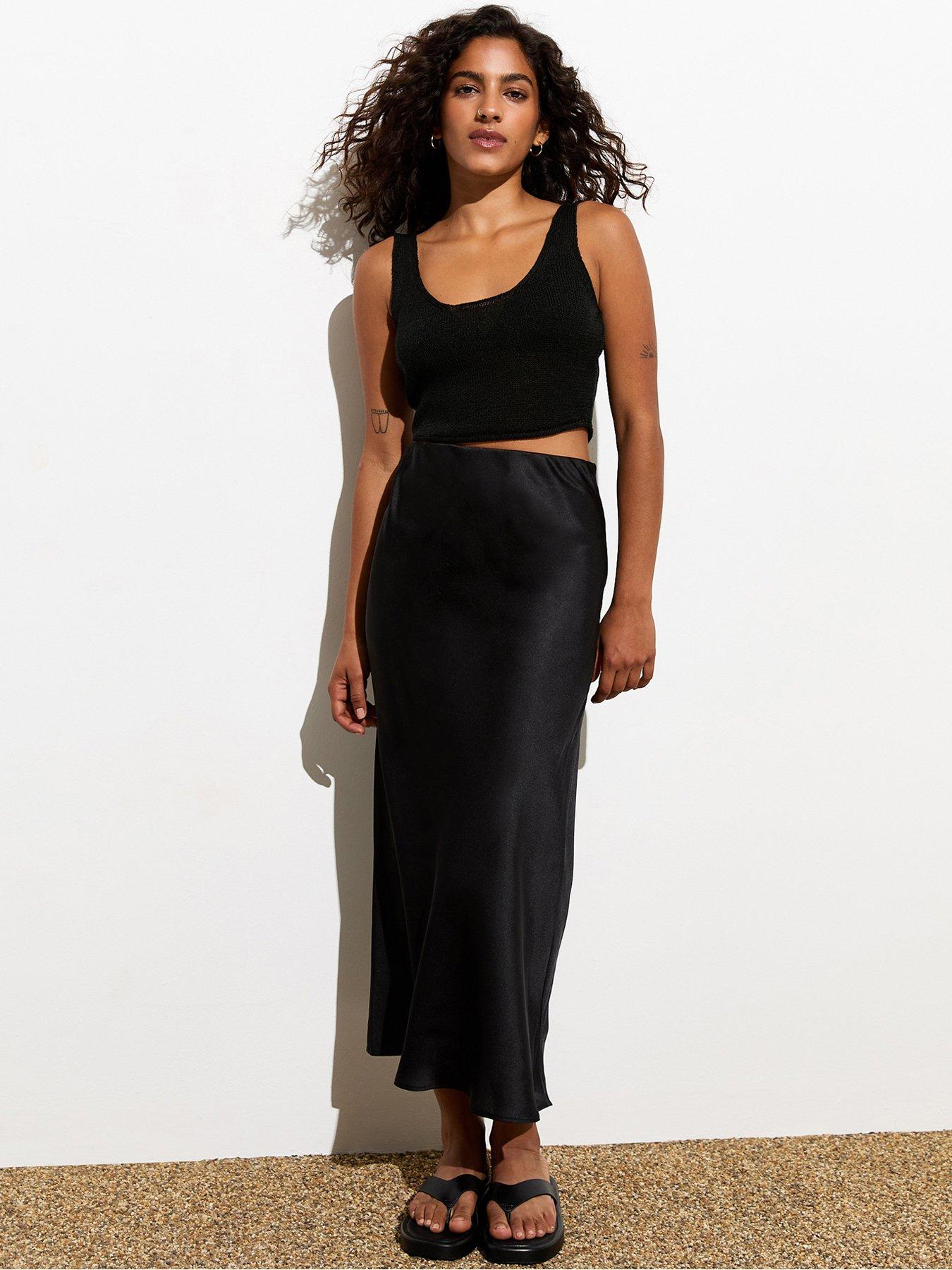 Petite Black Satin Bias Cut Midi Skirt New Look Very well made.