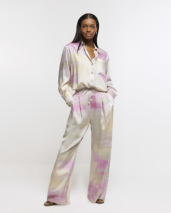 SATIN WIDE LEG TAILORED TROUSERS PINK Very well made.