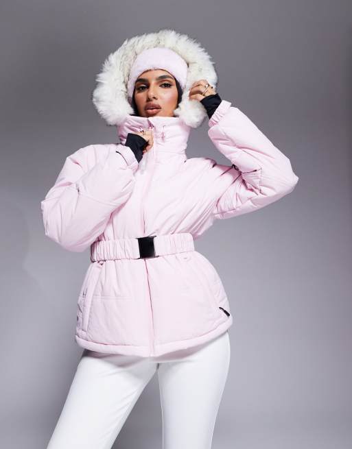 Plt Ski Pink Faux Fur Hooded Belted Jacket PrettyLittleThing Very well made.